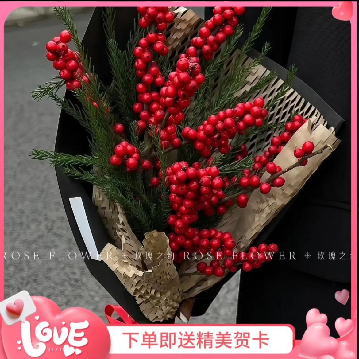好运连连-2枝仿真冬青新年花束跨年礼物新年跨年礼物新年送朋友送长辈花店送花上门新年轻礼赠