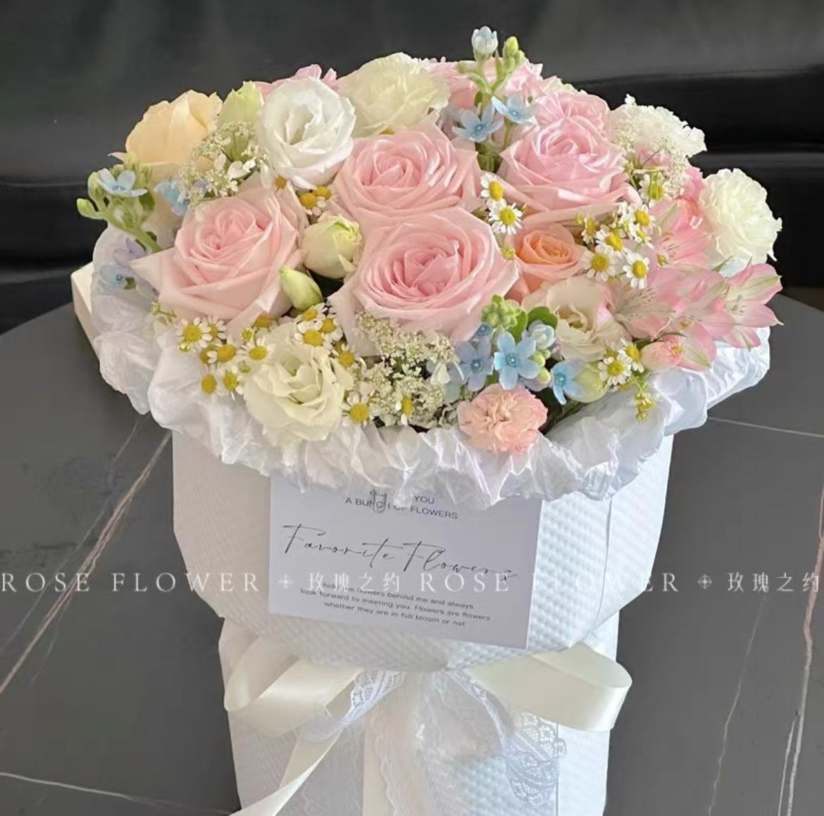 【鲜花礼物】只为遇见你-11枝粉玫瑰花束桔梗洋甘菊混搭花束生日鲜花生日礼物花