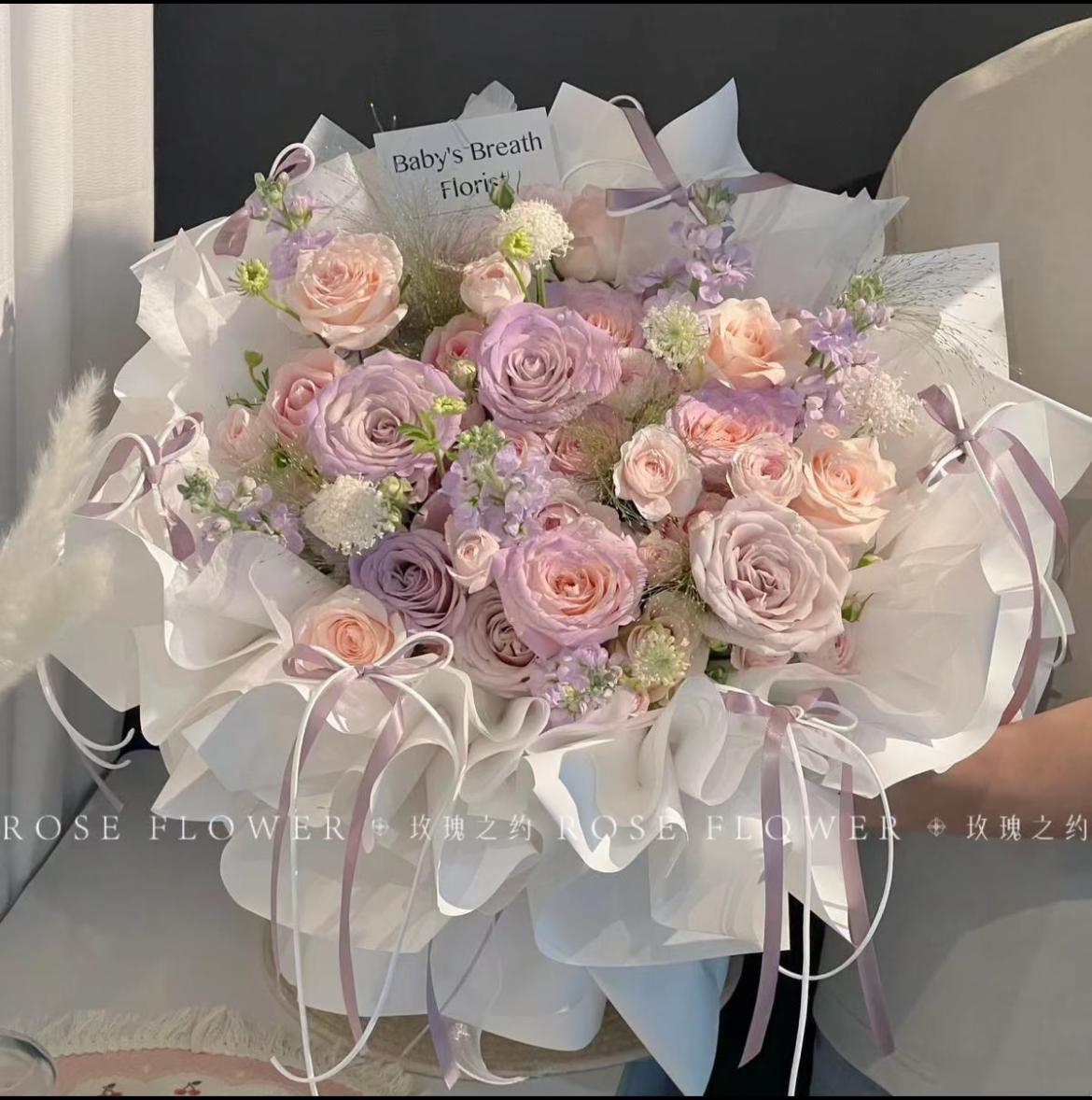攒劲温柔走向你-19朵混搭玫瑰双鱼座混搭曼塔芭蕾风花束送爱人闺蜜生日鲜花花店送货上门礼物